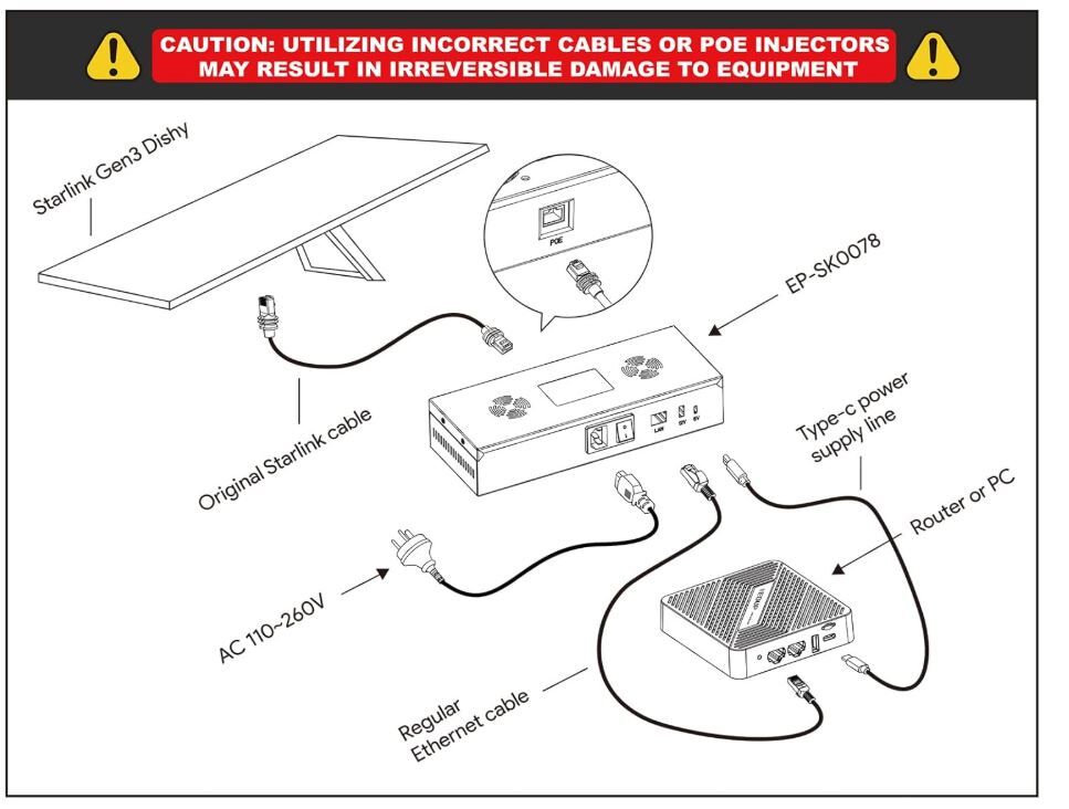 • High-Powered Performance: Efficiently converts AC 110-260V to DC 54V 3A with up to 200W of power, ensuring reliable operation for the Starlink Gen 3 satellite dish. Includes a built-in 180W PoE injector and a 20W booster, perfectly engineered for stable and uninterrupted connectivity.