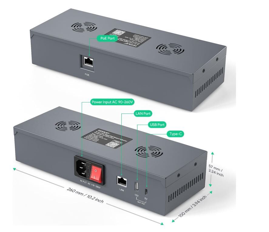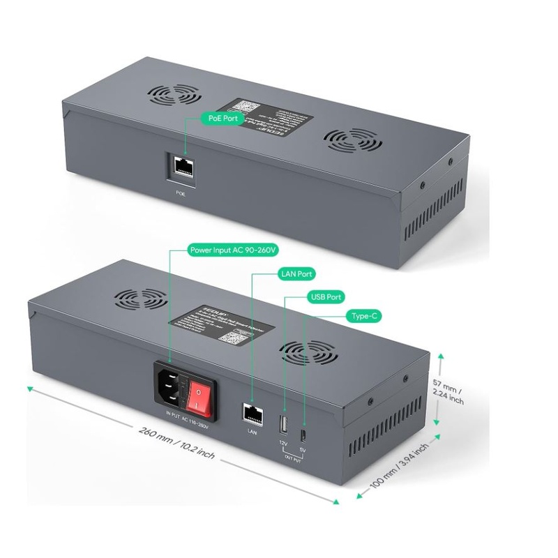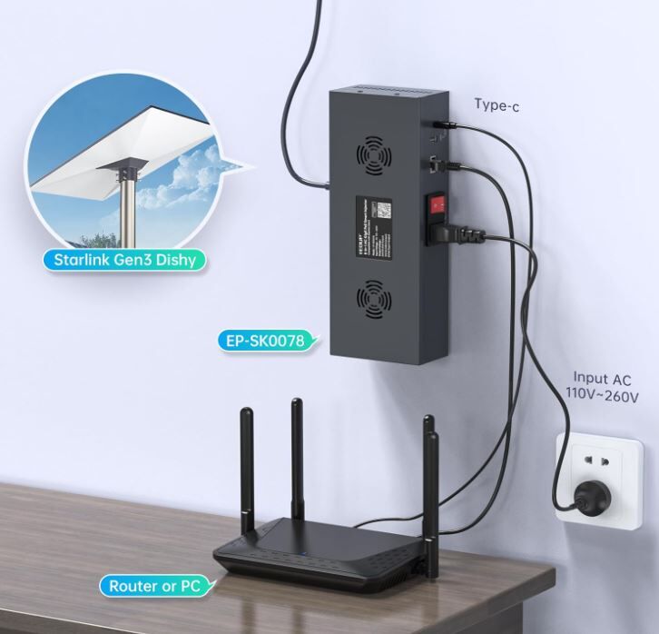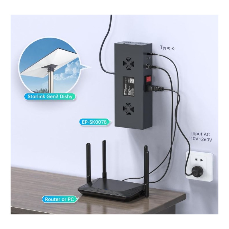 • Versatile Power Outputs:Equipped with a LAN output, USB-A (12V/3A), and Type-C (5V/3A) power outputs to support a wide range of devices, including computers and routers. Perfect for integrating your network with the Starlink internet kit.