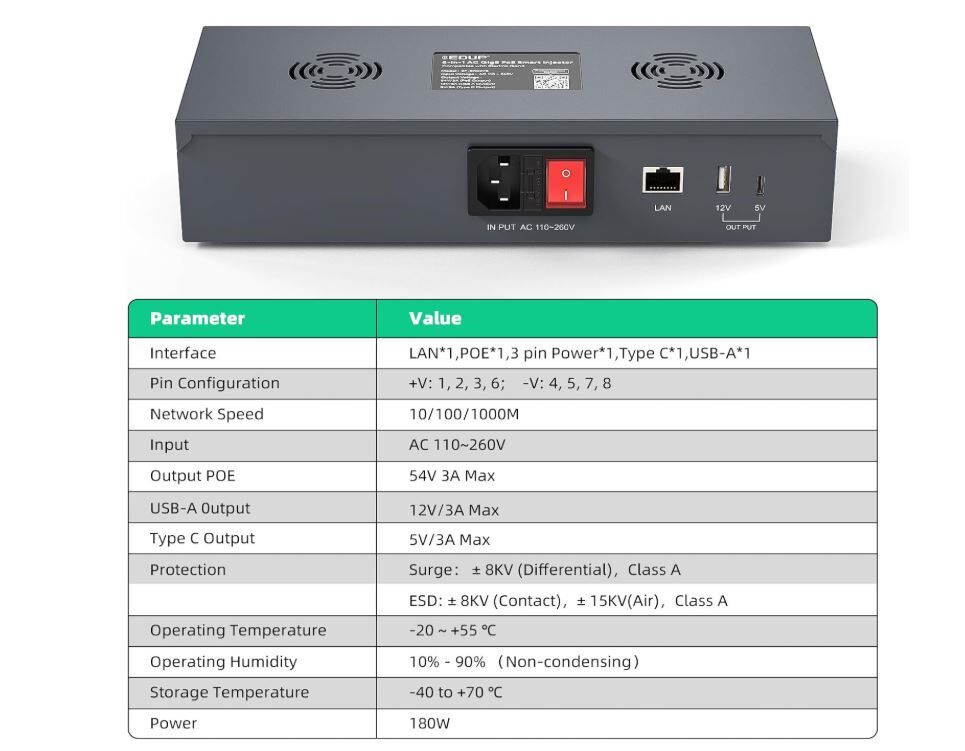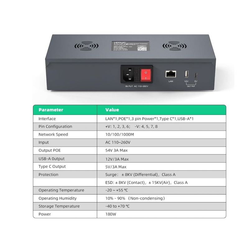 • Advanced Protection and Durability:Features built-in surge and ESD protection, capable of withstanding extreme conditions (-20°C to +55°C) and high humidity (10%-90% non-condensing), ensuring reliability and long-lasting performance.